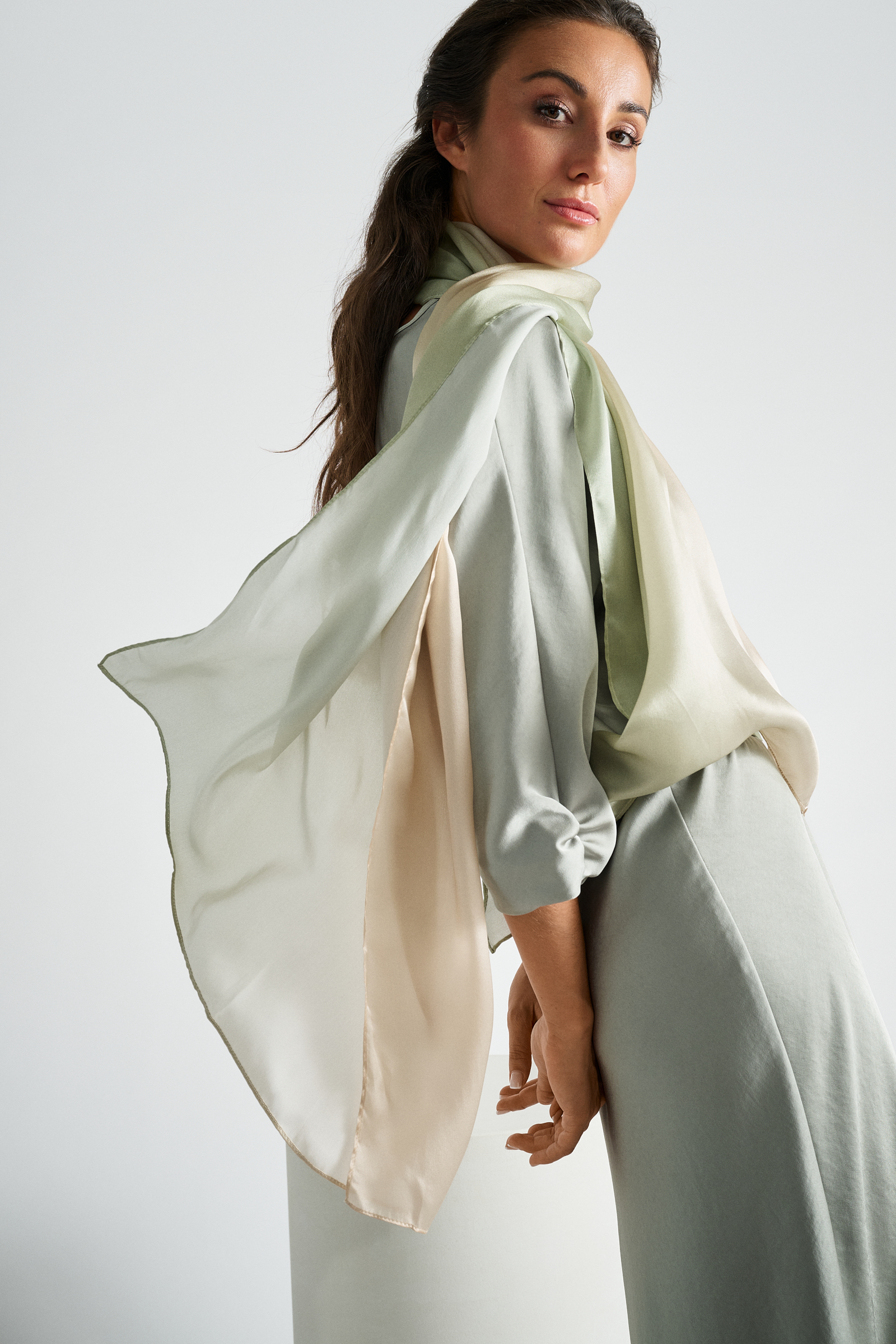 De feestcollectie bij Marie Méro ademt luxe met rijke stoffen zoals brokaat en satijn. Dankzij kleuren zoals goud, ecru & subtiele zwarte accenten straalt de collectie met haar verfijnde jurken, blouses en jasjes.